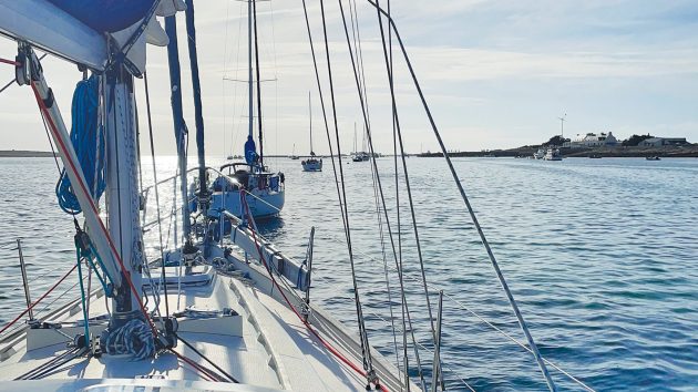 We initially thought we’d escaped unscathed, but closer inspection revealed a 30cm horizontal full-thickness crack about 10cm above the waterline. This continued to ooze water, despite us applying a plastic padding temporary repair to the inside. We decided to cut short our cruise and planned a direct route back to Plymouth via day hops and a few days later found ourselves back in Roscoff to check out of customs.
