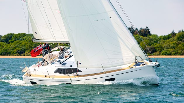 Balancing the smaller main was the overlapping headsail, which gives 43ft (4m2) more area than the self-tacker at the expense of a wider sheeting angle – the tracks are on the inboard side of the decks because the design and shape of the coachroof doesn’t allow them to be mounted on the top. This hardly seemed to hold her back upwind in brisk conditions. You could always rig up inhaulers if you wanted to.