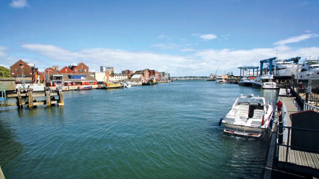 If the buildings around are blanketing the wind then the manoeuvre is impossible, but if there is wind there are two options. In a fresh breeze, jib alone is safer because it is easier to slow down on a broad reach. It’s also vital to have enough speed to make the turn into the wind and tide at the bridge.