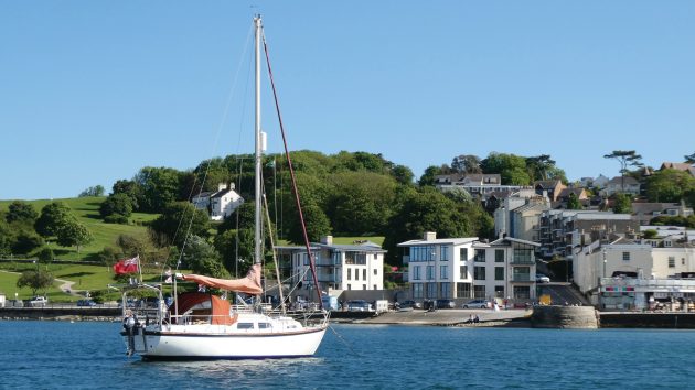 The Channel ebb should then push her rapidly west, right past Portland and well into Lyme Bay, before it turns. Swanage also makes an appealing destination when running for shelter before a westerly blow. As soon as you hook in around Peveril Ledge, the water seems wonderfully flat, and within 15 minutes you can be swinging peacefully at anchor. If nobody feels like cooking, there are those chippies on the shore!