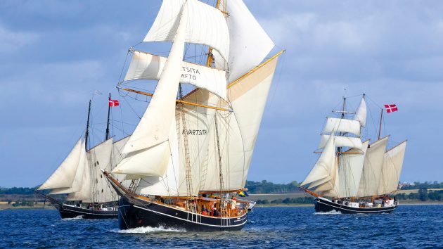 In Nykøbing Mors the sun is out again, and we are all enjoying a nice morning in the harbour. As we approach the starting line amidst all the other ships, I take the helm for a brief moment. What a fantastic feeling, steering through the fjord together with 67 other ships, all racing for the start.
