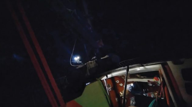 Without an engine, a tow from the lifeboat (the bright working lights) was the only way to drag Diva off the rocks