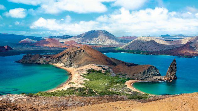 Puerto Ayora on Santa Cruz is a stunning vision of azure and blue. Photo: Hilary Thomson and Liam Johnston